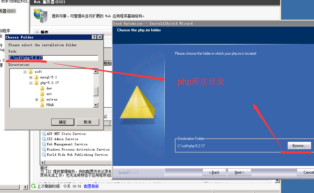 将php.ini文件拷贝到C盘的windows目录和C:\soft\php-5.2.17(此目录根据您的实际目录)目录下